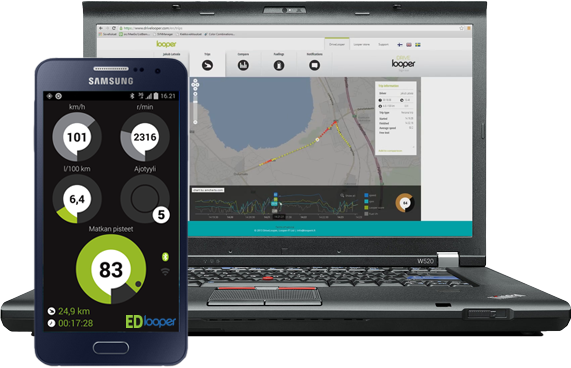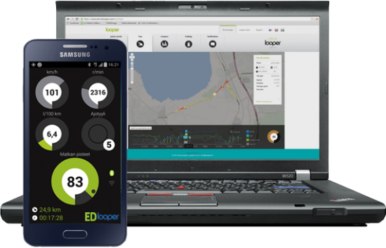 EDlooper-palvelun avulla seuraat ajamista tarkasti ja helposti. Palvelu antaa vinkkejä ajon aikana ja kerää ajotiedot talteen myöhempää tarkastelua varten. Palvelusta on helppo tulostaa valmiit ajopäiväkirjat ja matkalaskut. Lisäksi kaikki ajetut matkat pisteytetään, jolloin kehityksen seuraaminen on helppoa. Opi ennakoivaksi ja turvalliseksi kuljettajaksi ja säästä polttoainekuluissa.